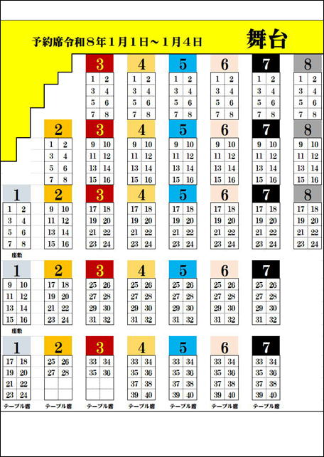 ご希望の席の番号をご確認の上、お申込み下さい。