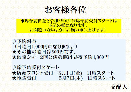 6月予約席承っております。